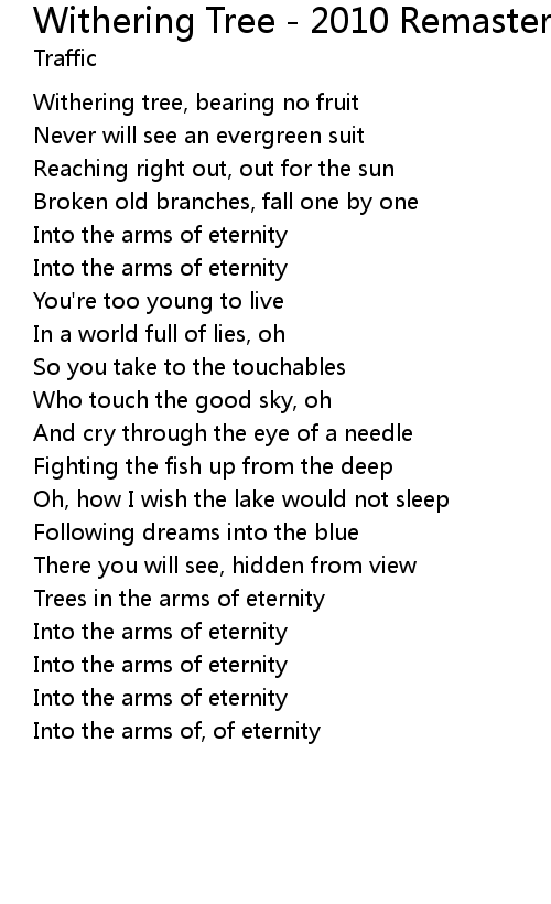 Trees in the arms of eternity |