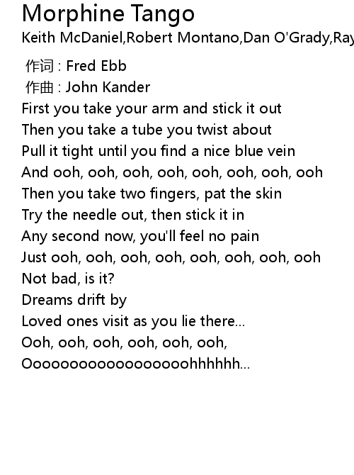 | [00:25.45] | Pull it tight until you find a nice blue vein |