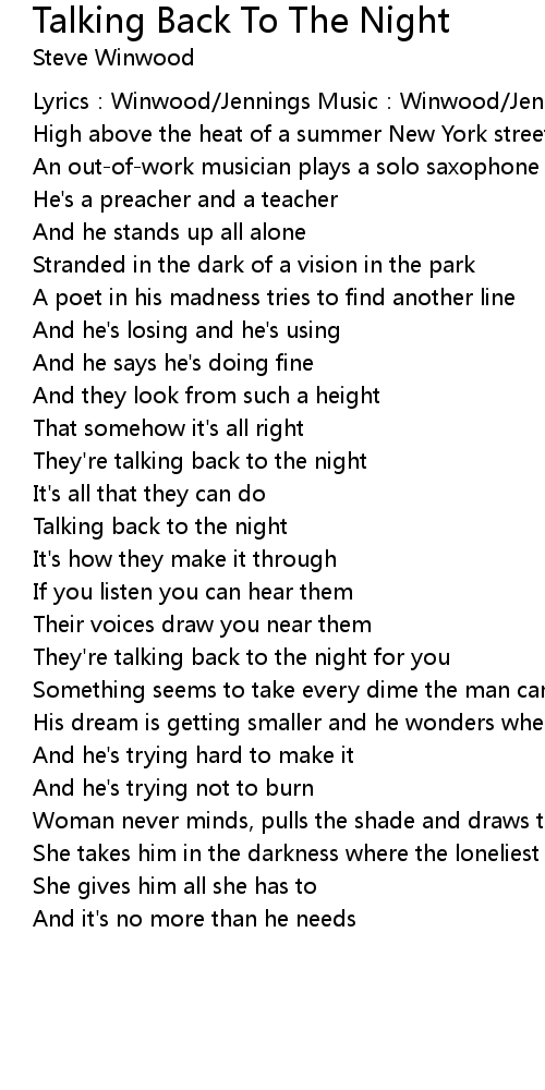 | Lyrics:Winwood/Jennings Music:Winwood/Jennings | |