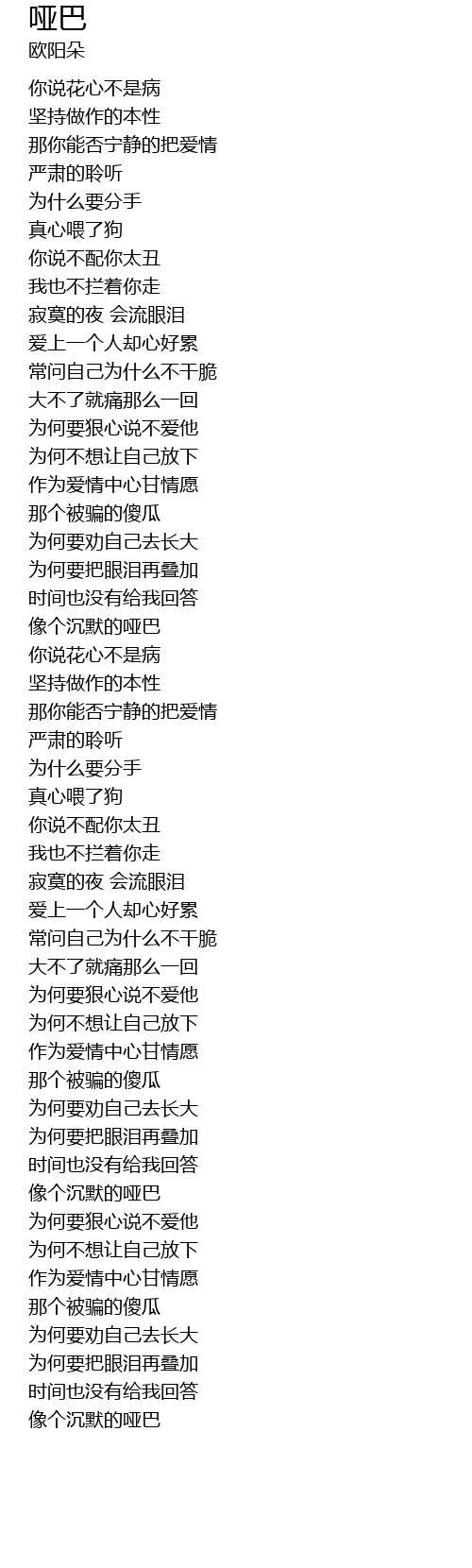 | [03:00.03] | xiàng gè chén mò de yǎ bā |