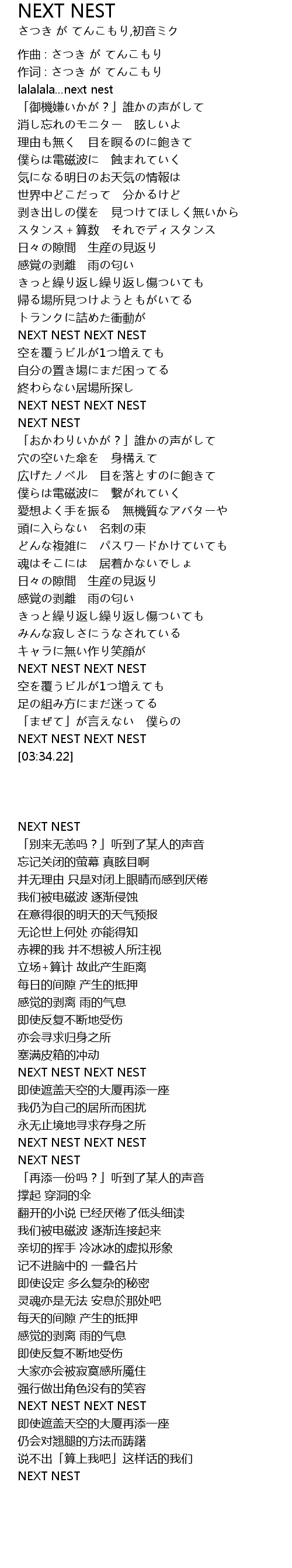 | [03:29.67] | NEXT NEST NEXT NEST |