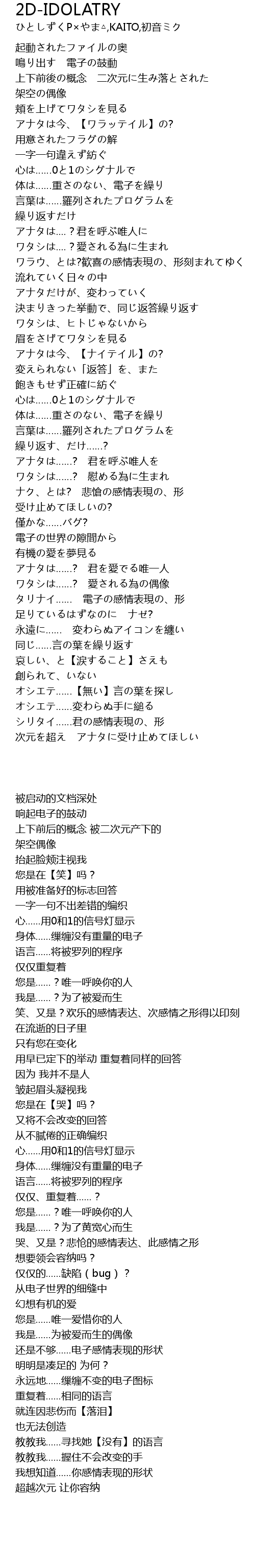 | [03:10.100] | ワタシは……? 愛される為の偶像 |
