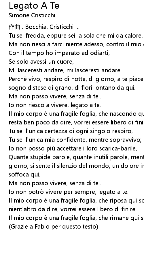 | 歌曲 | Legato A Te |
