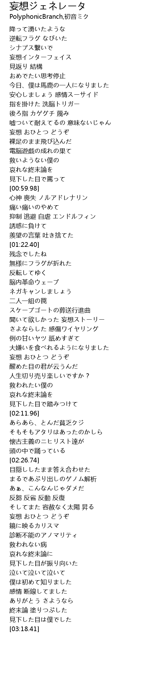 | [01:58.51] | 妄想 おひとつ どうぞ |