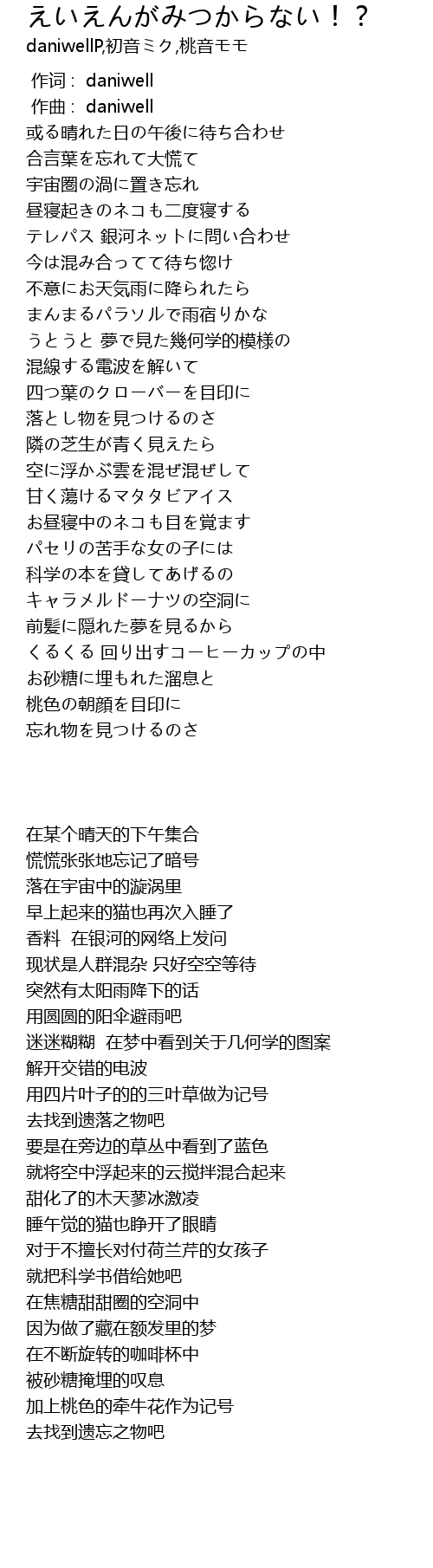 | [00:19.87] | 宇宙圏の渦に置き忘れ |