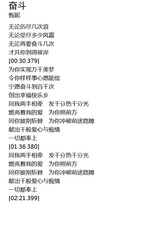 | [00:40.160] | 宁愿奋斗到百千次 |