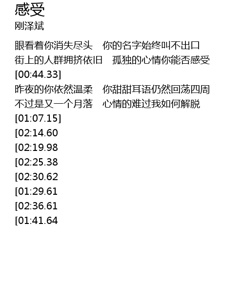 | [00:57.59] | 不过是又一个月落 心情的难过我如何解脱 |