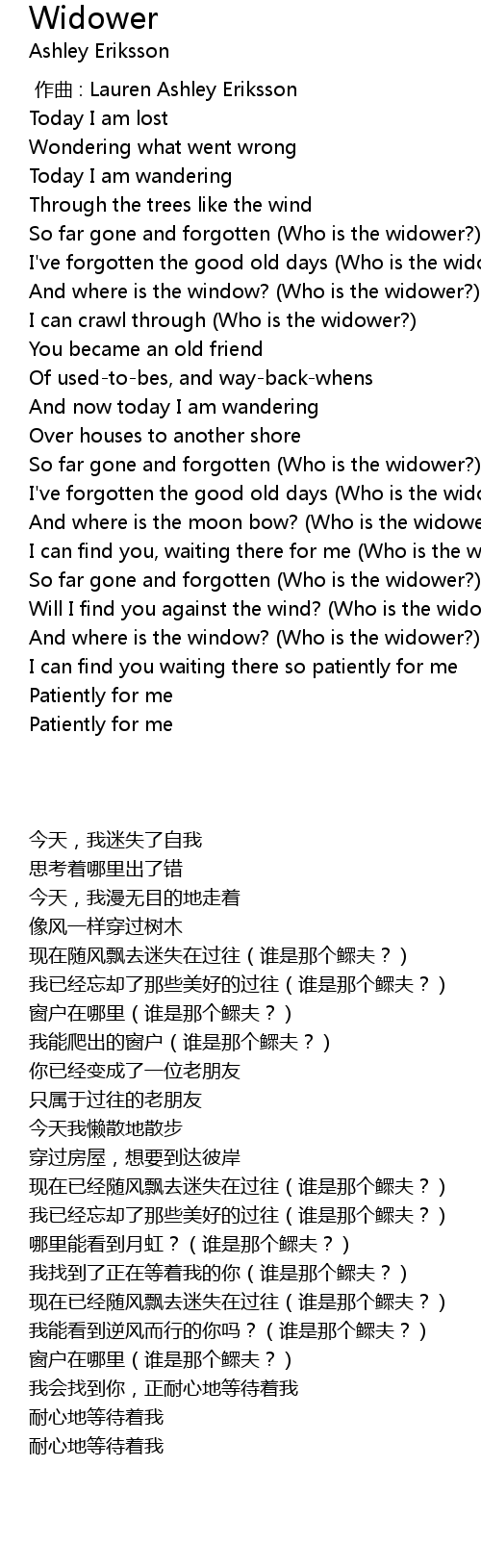 | [03:52.324] | So far gone and forgotten (Who is the widower?) |
