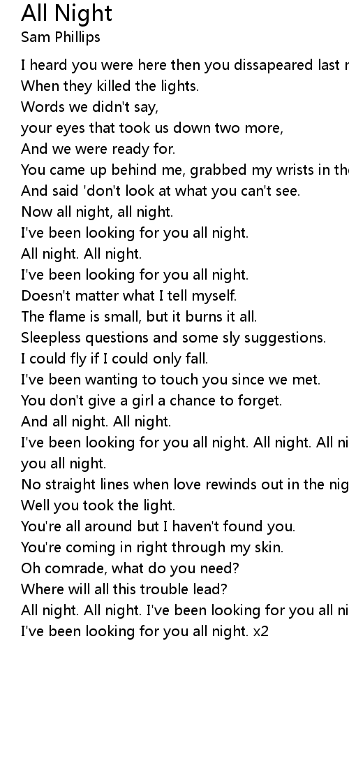All night. All night. I've been looking for you all night. All night. All night. I've been looking for you all night. x2 |