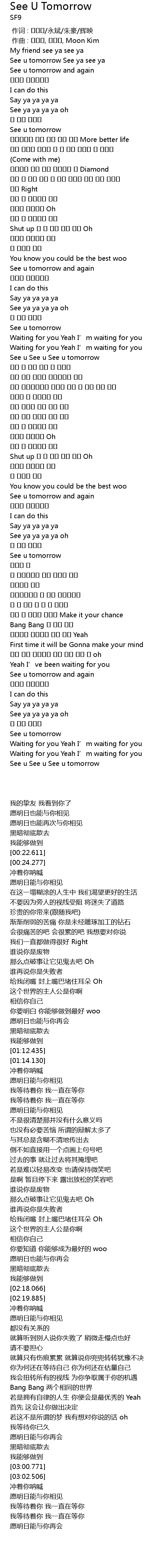 | [03:20.028] | See u See u See u tomorrow |