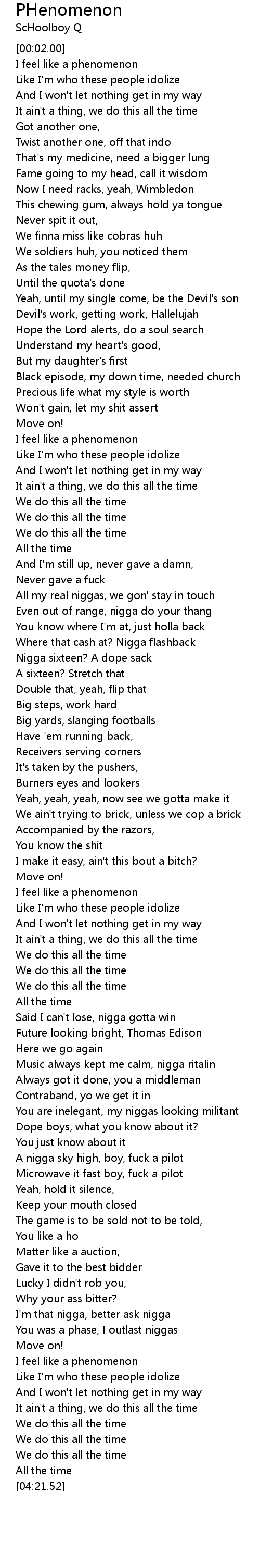 I feel like a phenomenon |
