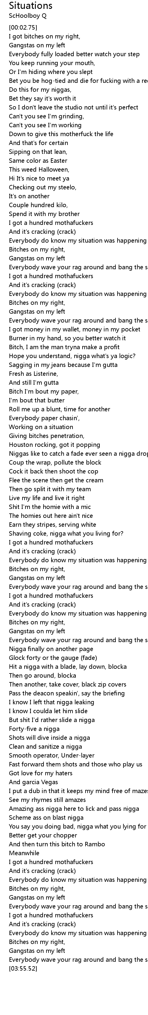 Everybody do know my situation was happening (happen) |