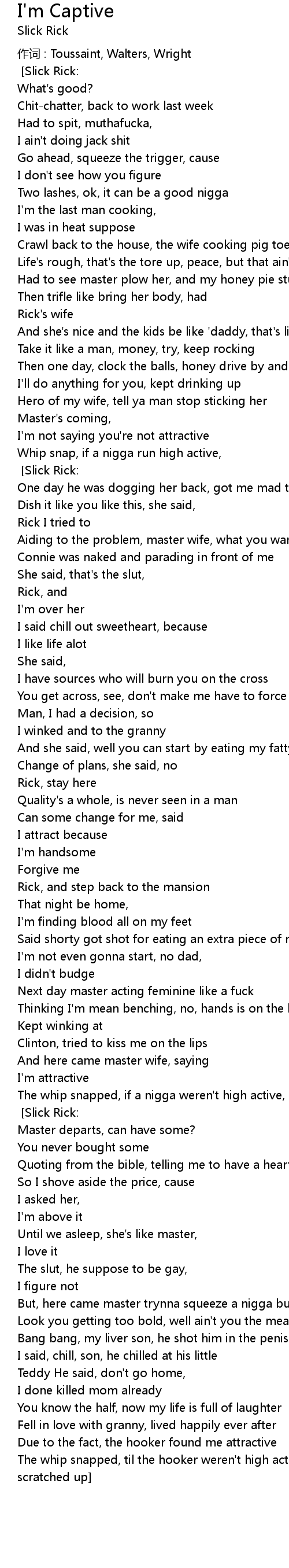| I'm captive... [samples scratched up] [Slick Rick:] | |