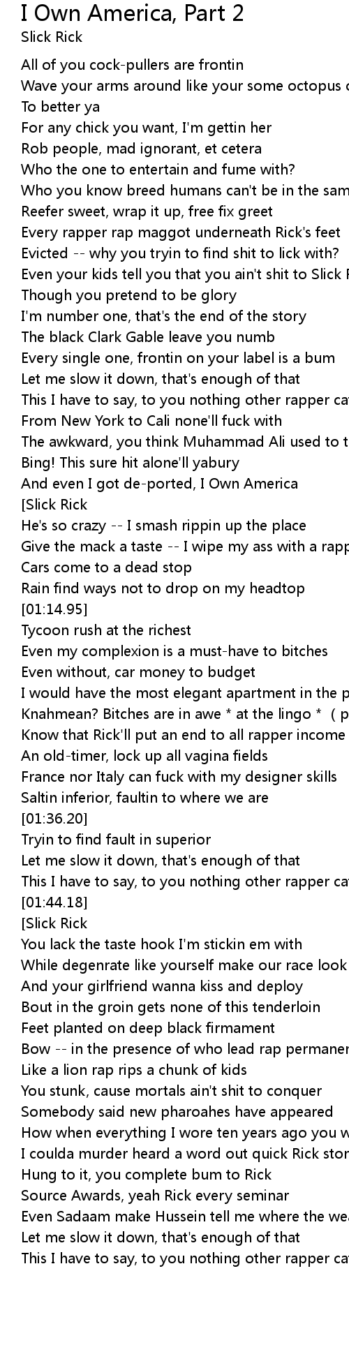 | [00:29.47] | Even your kids tell you that you ain' t shit to Slick Rick |