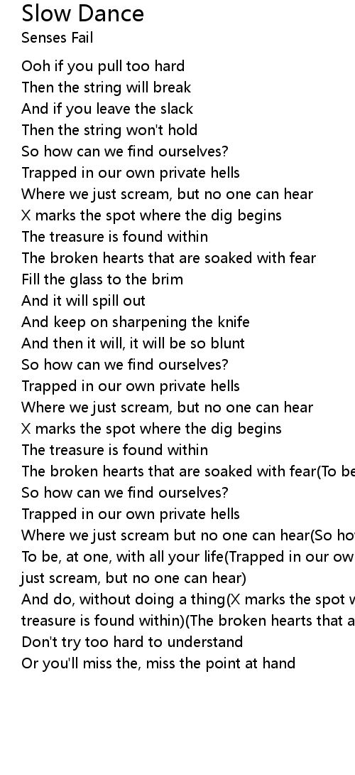 And do, without doing a thing(X marks the spot where the dig begins)(The treasure is found within)(The broken hearts that are soaked with fear) |