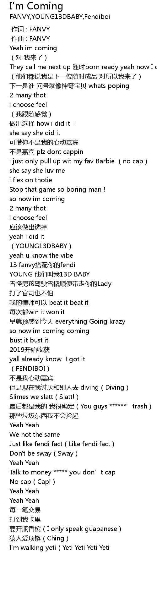 | [00:27.321] | They call me next up sui shi born ready yeah now I coming |