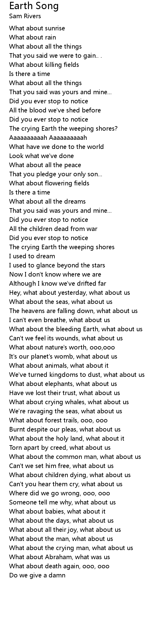 What about the bleeding Earth, what about us |