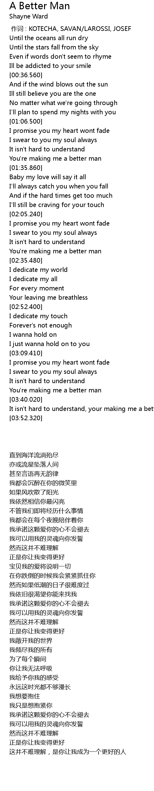 | [03:42.320] | It isn' t hard to understand, your making me a better man |