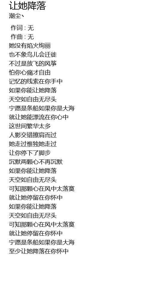 | [03:42.436] | zhì shǎo ràng tā jiàng luò zài nǐ huái zhōng |