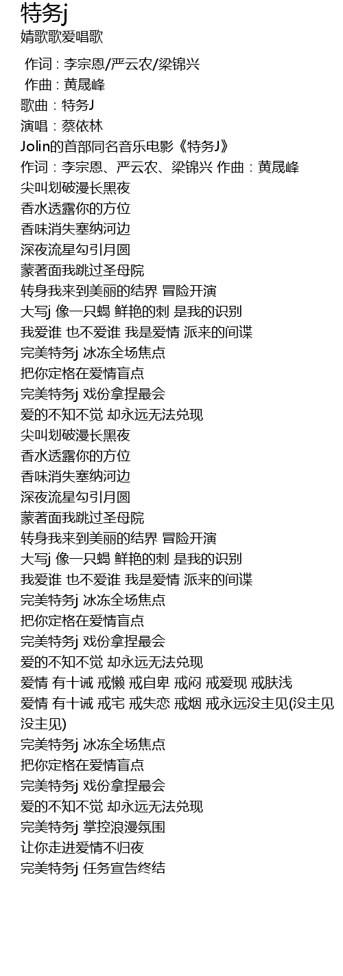 | [00:12.174] | Jolin的首部同名音乐电影《特务J》 |