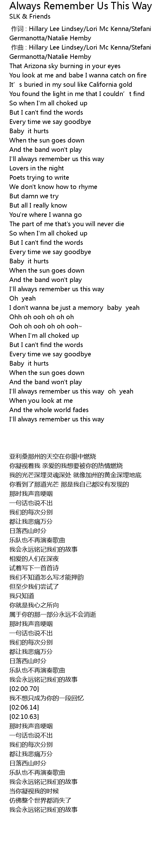 | [02:42.29] | I'll always remember us this way oh yeah |
