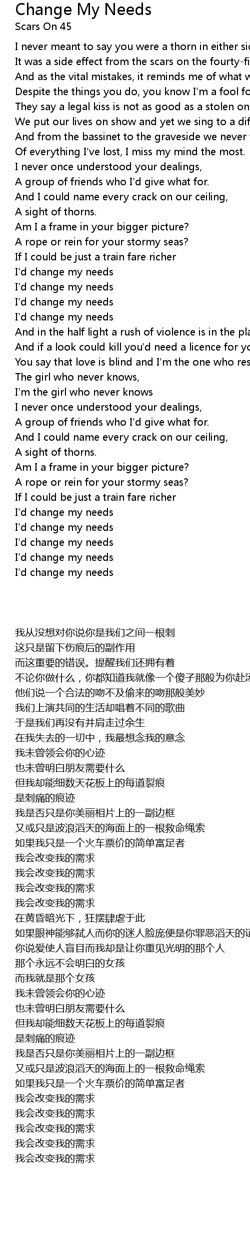 I'd change my needs |