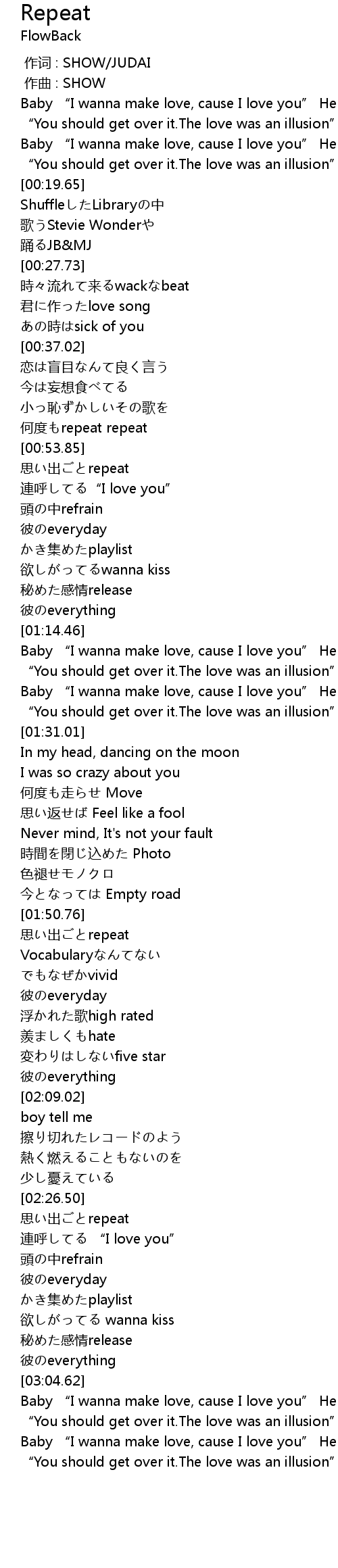 | [00:50.91] | 何度もrepeat repeat |