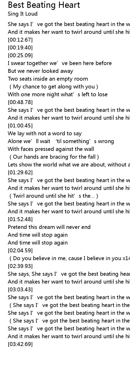 | [02:40.17] | She says, She says I' ve got the best beating heart in the world x3 |
