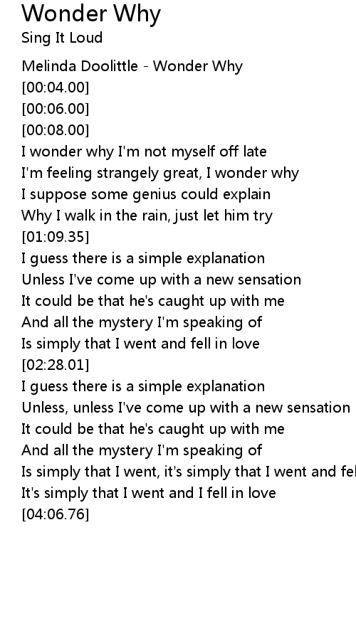 [00:02.00] Melinda Doolittle - Wonder Why