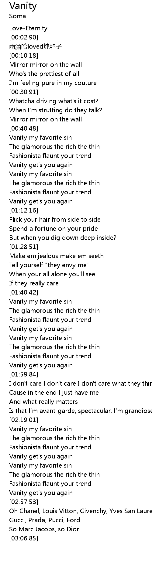 | [02:59.19] | Oh Chanel, Louis Vitton, Givenchy, Yves San Laurent |