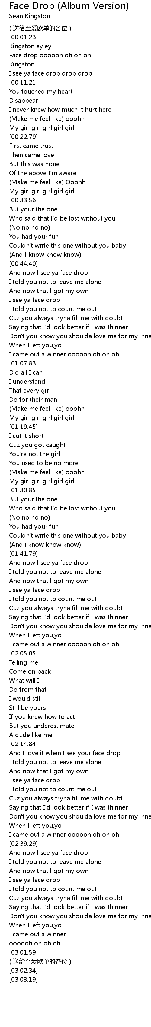 | [00:03.70] | Face drop oooooh oh oh oh |