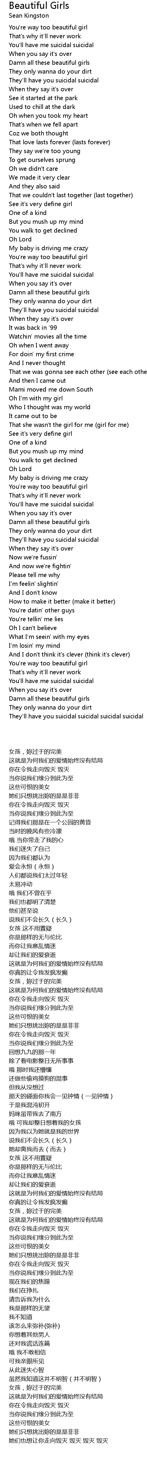 歌曲 Beautiful Girls