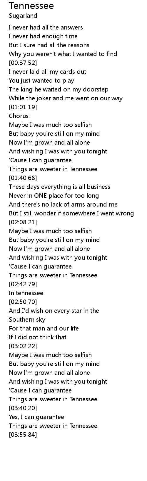 Tennessee 歌词