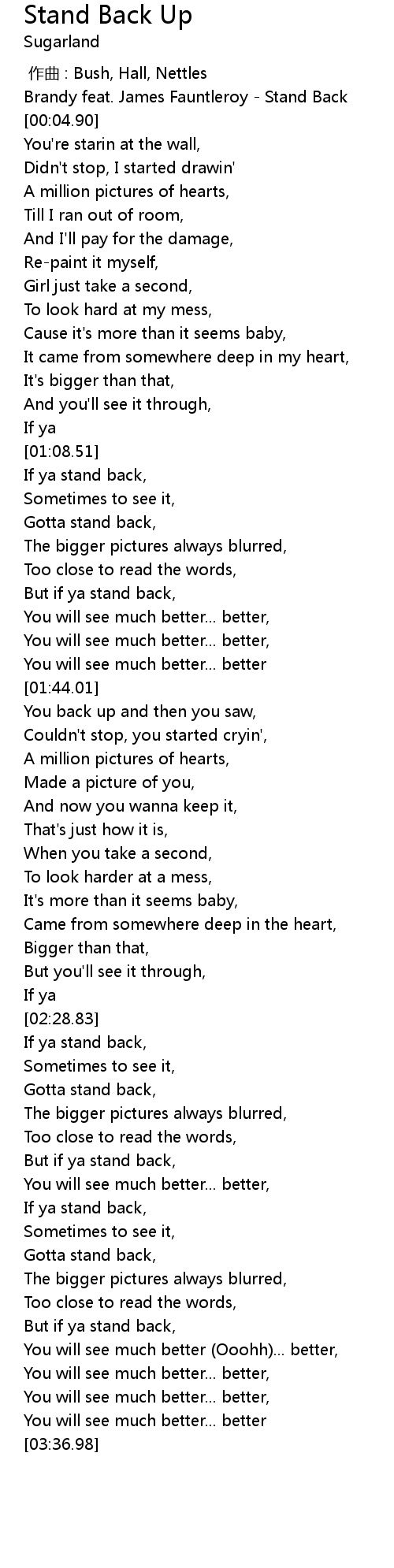 | [00:01.20] | Brandy feat. James Fauntleroy - Stand Back |