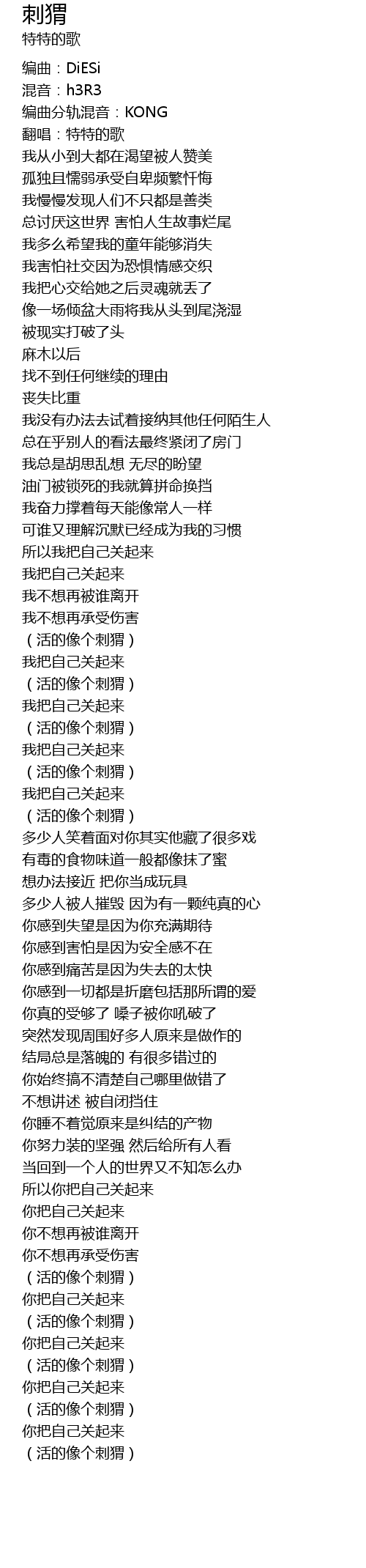 | [01:13.901] | (活的像个刺猬) |