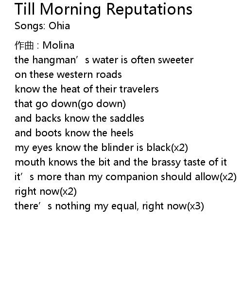 | 歌曲 | Till Morning Reputations |