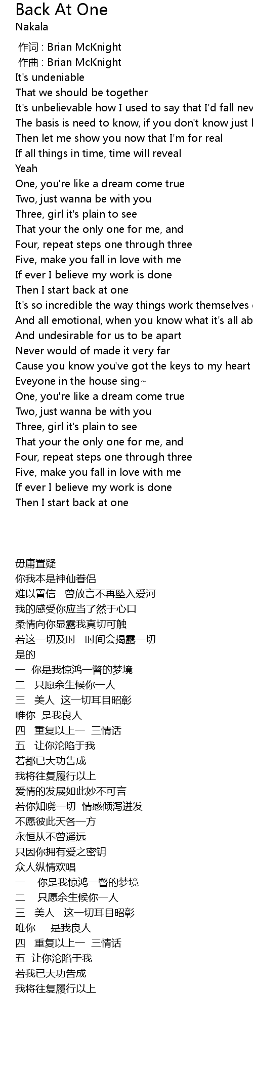 | 歌曲 | Back At One |