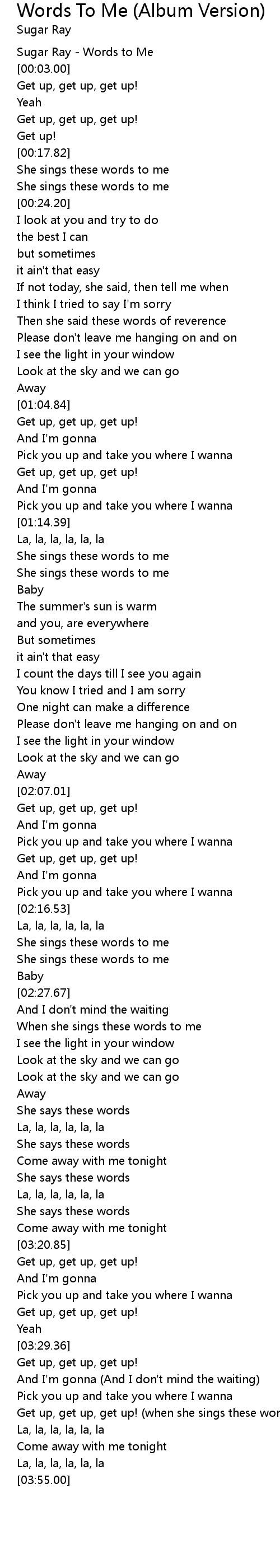 | [00:00.00] | Sugar Ray - Words to Me |