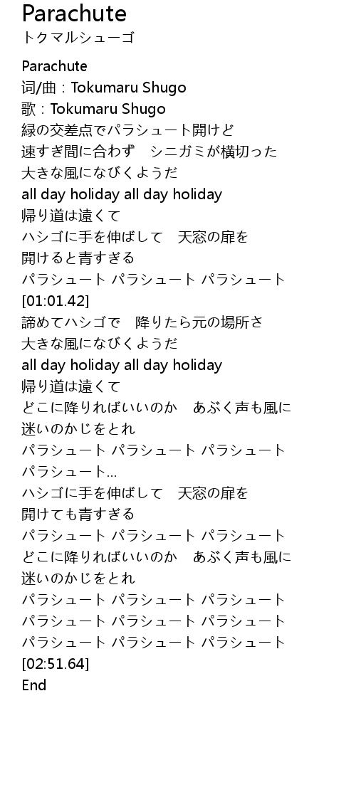 | [00:56.10] | パラシュート パラシュート パラシュート |