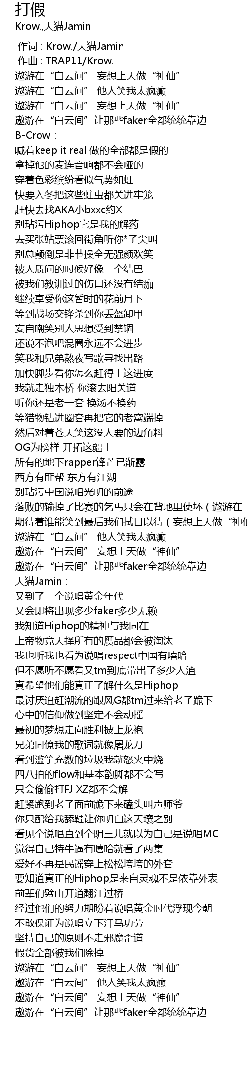 | [00:00.000] | 作词 : Krow./大猫Jamin |