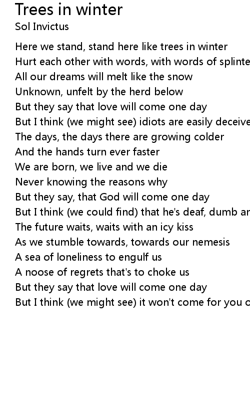Here we stand, stand here like trees in winter |