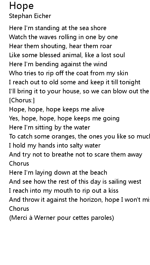 | Hope, hope, hope keeps me alive | |