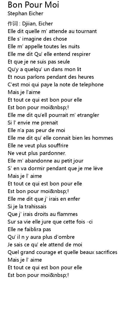 | 歌曲 | Bon Pour Moi |