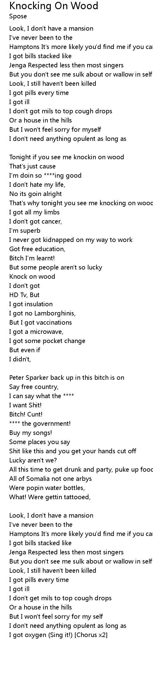 That's why tonight you see me knocking on wood |