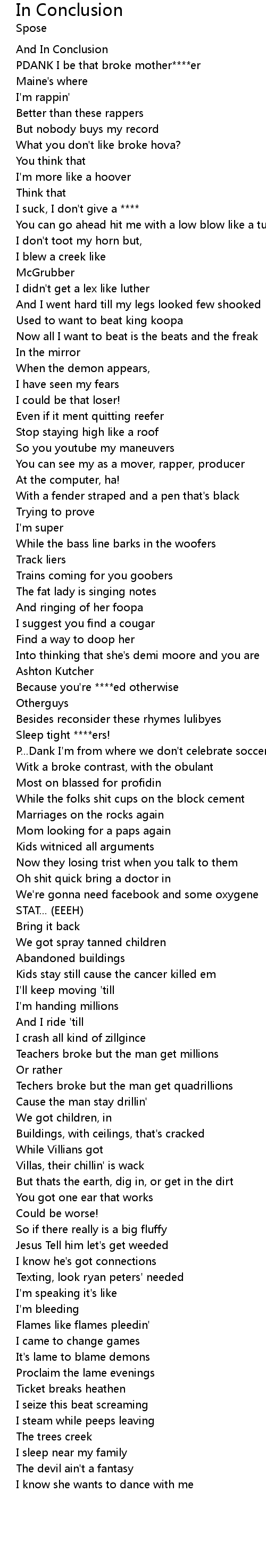 And In Conclusion |
