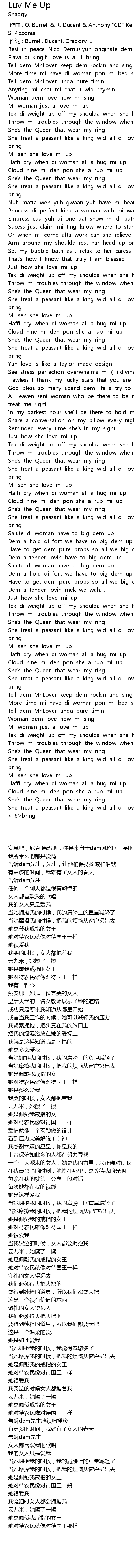 | [00:20.56] | Tek di weight up off my shoulda when she hug mi up |
