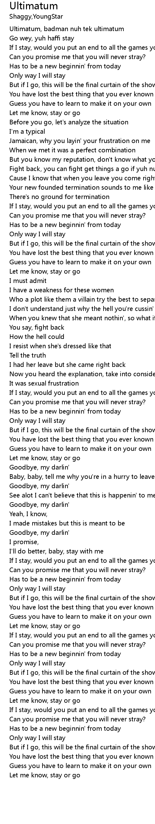 | Baby, baby, tell me why you're in a hurry to leave? | |