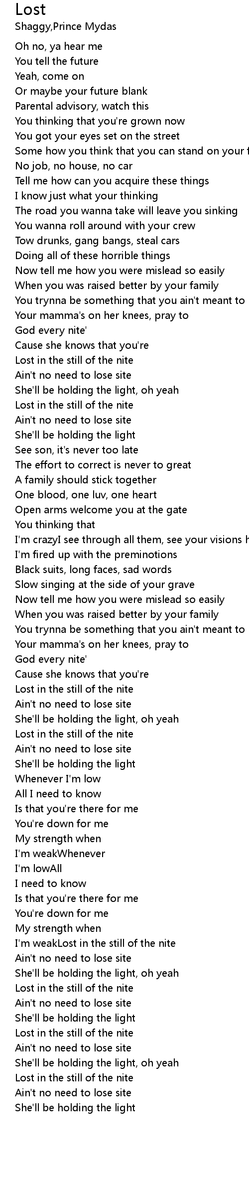 | I'm weakLost in the still of the nite | |