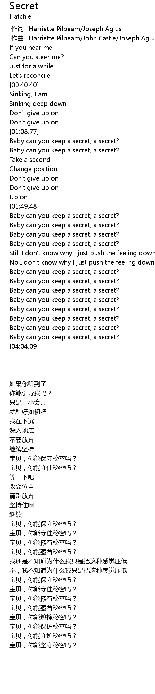 | [03:01.59] | 宝贝,你能守住秘密吗? |