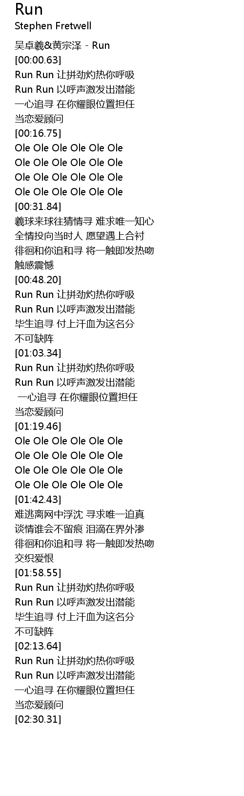 | [00:00.17] | 吴卓羲&黄宗泽 - Run |